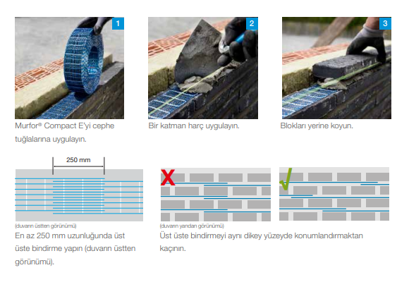 Murfor® Compact, aşağıdaki duvar uygulamalarında etkin bir şekilde kullanılabilir: